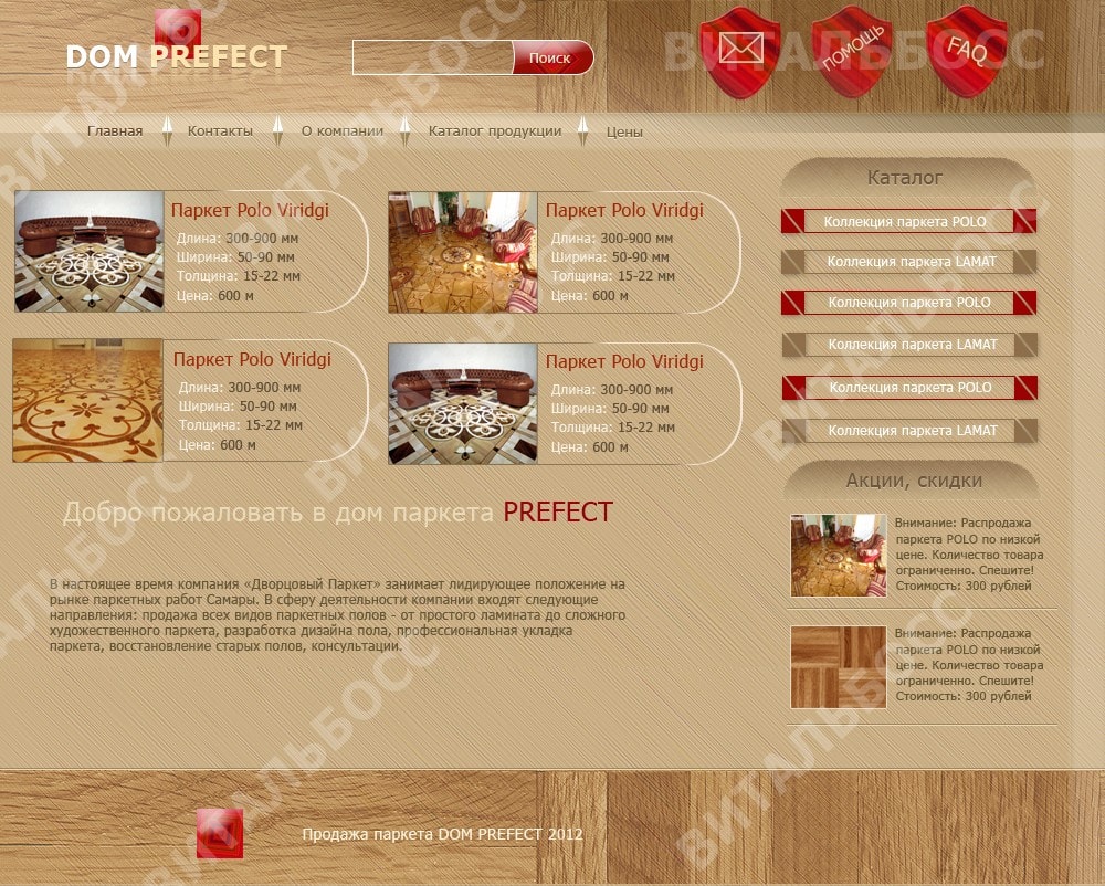 Выставляю на продажу макет по продаже паркета. Если не паркет то смело можно использовать под продажу дверей, линолиума, ламината и другие близкие к этим тематики. В лого название могу поменять на любое другое