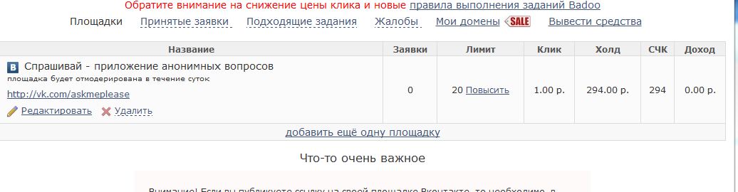 Площадка отправлена на модерацию. Отправил рекламные вопросы 26000 из 289920 чел... (за час 294 перехода по ссылке)