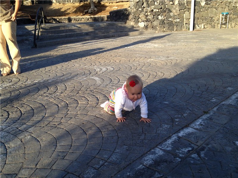 На прогулках, деткам перемещающимся исключительно ползком, лучше одевать тёплые штанишки когда ползают по городской площади. Да и то в плане того чтоб коленки не сбили. 😂