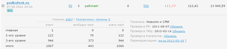 Доход: 115р./день (Sape, 0-1-1) - хорошая динамика, 1000р./мес. (баннер)