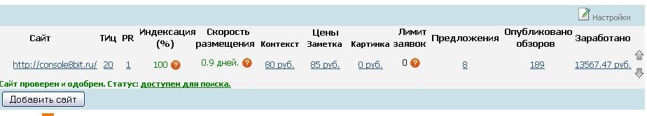 8. Сайт в GGL, GetGL, Miralinks, Rotapost (За 3 месяца в среднем 500$ заработал.)
