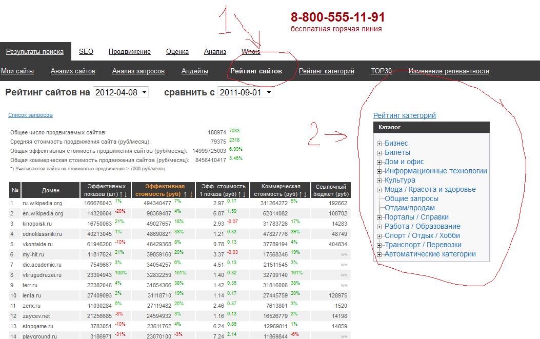 На сервисе megaindex после регистрации есть вкладка рейтинг сайтов.