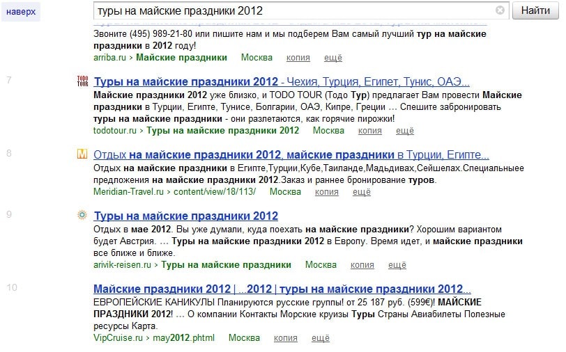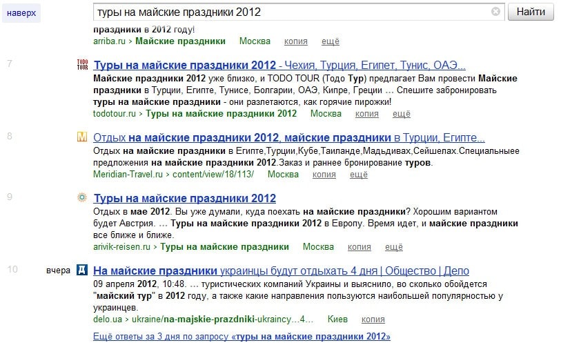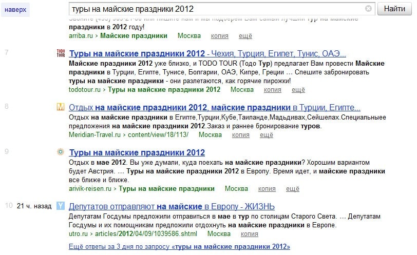 Если в топ9 не нашел нужной инфы, яндекс предлагает "свежий" ответ на твой запрос на десятую позицию. С каждым обновлением страницы предлагает разные сайты.