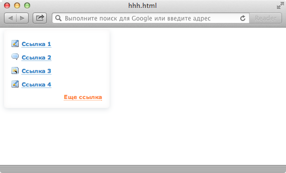 Нужно добавить картинку к "Ссылка 1, 2, 3, 4" к "Еще ссылка" картинка не нужна. Помогите это сделать пожалуйста.