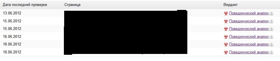 Неделю назад яша стал выводить в поиске предупреждение о вирусе, а в вебмастере вот такая лабуда.