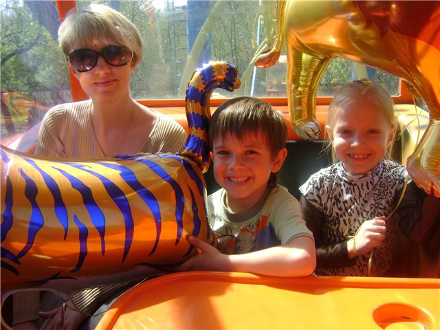 Вита-Ника, превозмогая страх высоты, таки катает подрастающее поколение на чертовом колесе. В сопровождении летающих зверей. 😂