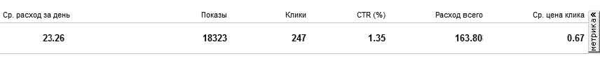 Результат до меня: несколько дней в неделю стабильно были вообще пустыми, деньги вложенные в развлекалово для гостей - пропадали, а по ее РК статистика за последнюю неделю была следующая, больше половины целевых запросов отключили на поиске за низкий CTR: