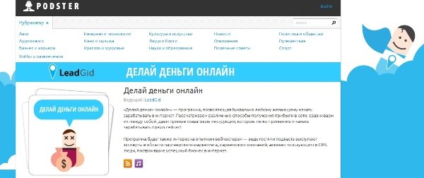 11 января 2013 в 16-00 в свет выходит первый выпуск нового аудио-подкаста компании Leadgid “Делай деньги онлайн” (leadgid.podster.ru). Передача будет транслироваться на базе известного терминала подкастов Podster.ru.