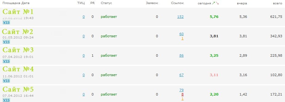 Пачка сайтов из 5 сайтов с доходом в сапе 18.13 руб. в день...