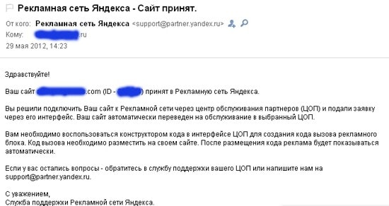 Сайт был принят в РСЯ (профит-партнер). Однако код я не размещал.