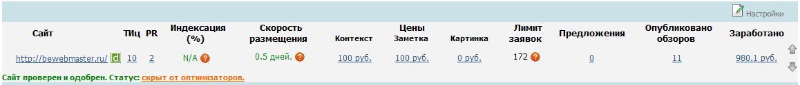 Доход: сайт принят в GoGetLinks, было размещено 11 обзоров за 8 дней, сейчас сайт скрыт (не тематические обзоры отклонял, когда было слишком много заявок – отклонял, слишком много требований – отклонял, в общем, было примерно 20-23 заявки, учитывая что цена стоит выше средних по системе), сайт находится в Miralinks, было опубликовано 9 статей, одна из которых была с написанием (не тематические – отклонял, которые не нравились – отклонял), сайт находится в Rotapost (за всё время разместил всего 4 постовых, остальные я отклонял).