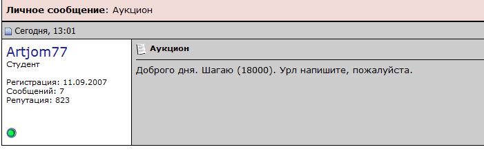 Условие окончания аукциона - 24 часа после последней ставки или блиц.