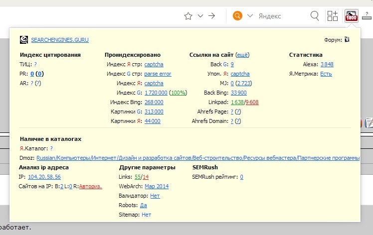 Правда не совсем всё работает... НО хотябы есть ТИЦ на иконке...