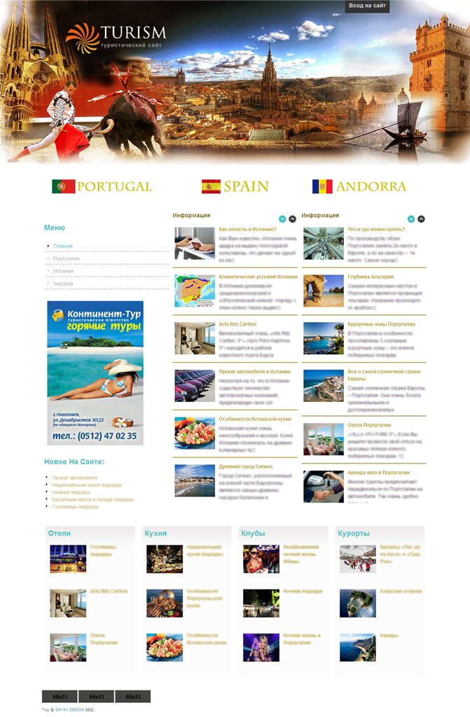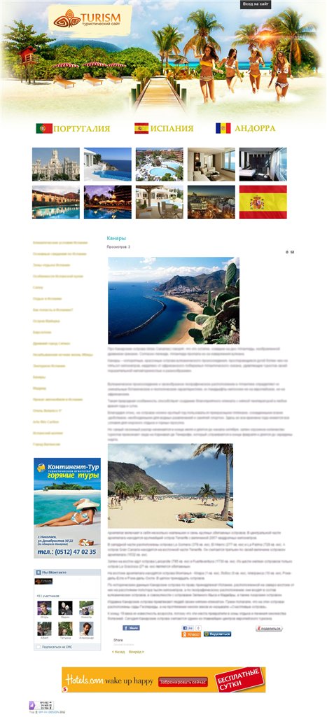 Здравствуйте! Представляю на аукцион туристический сайт - "Испания, Португалия, Андорра" созданный нашей командой - сайт без домена.
