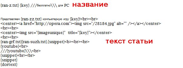 http://operra-free.ru/opera-Siemens-S65.html - пример статьи(уникальная картинка парсилась, есть 2 сниппета). Внизу можно увидеть генерируемую текстовку для {dortext}(следовало её здесь размещать незнаю, сделал 1 ключевое слово и 1 кусочек кея на 700 символов, если не ошибаюсь)
