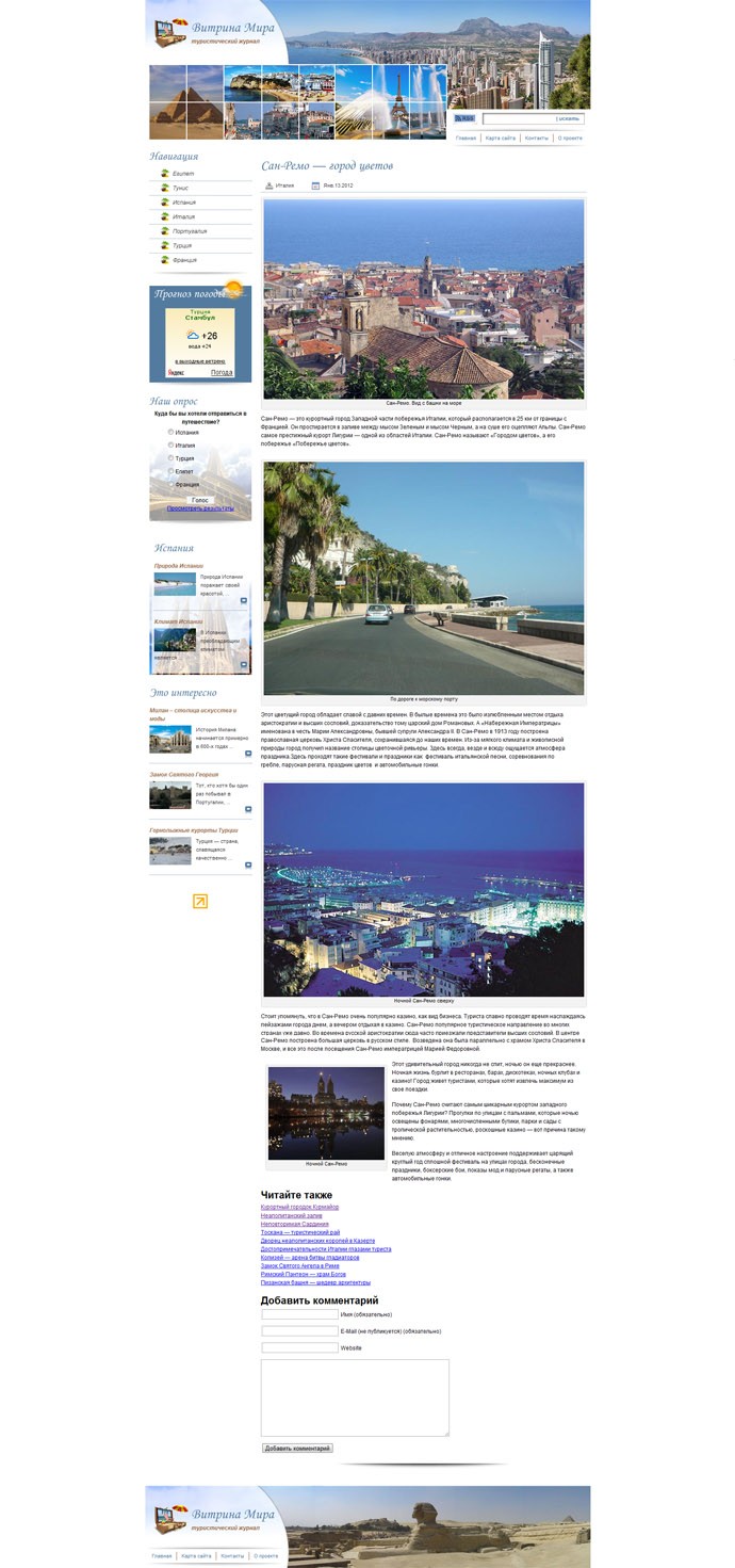 Дизайн: Уникальный шаблон. Заказывался дизайн, выполнялась его верстка и натяжка на Wordpress. PSD макет прилагается. Особое внимание обратите на «Виджет анонсов», который писался отдельно для редактирования блоков с анонсами в боковых колонках.