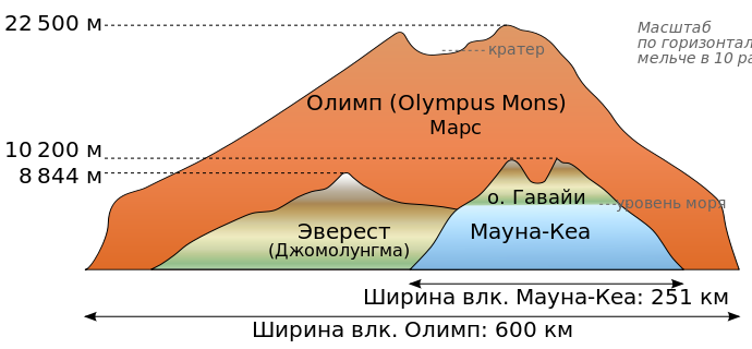 У Эвереста это примерно 4,5 км, у этой марсианской горы - 5,5 км.