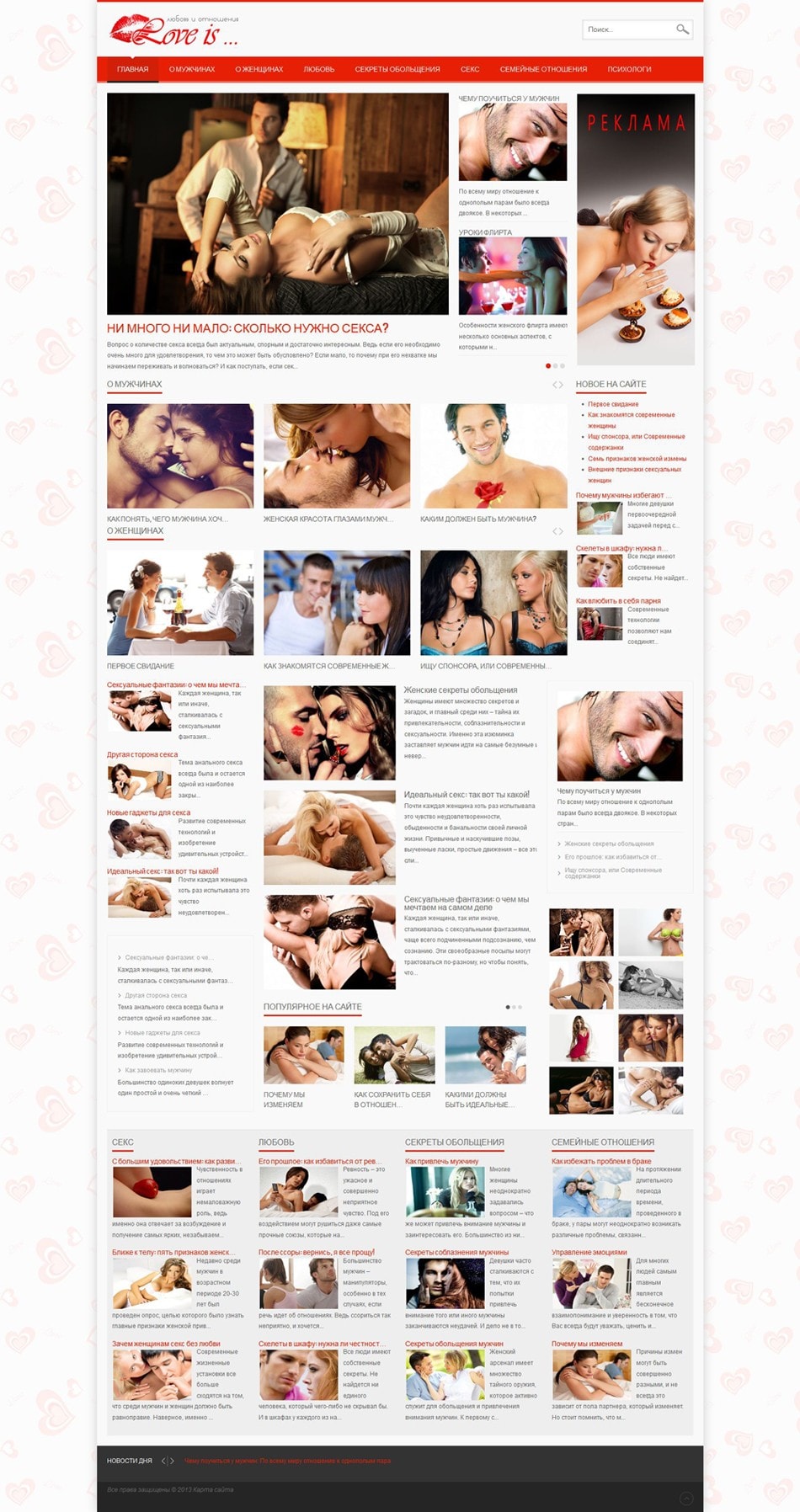 - Уникализированный шаблон, практически полностью изменен дизайн, доработан и оптимизирован под данную тематику сайта ("Секс и отношения");