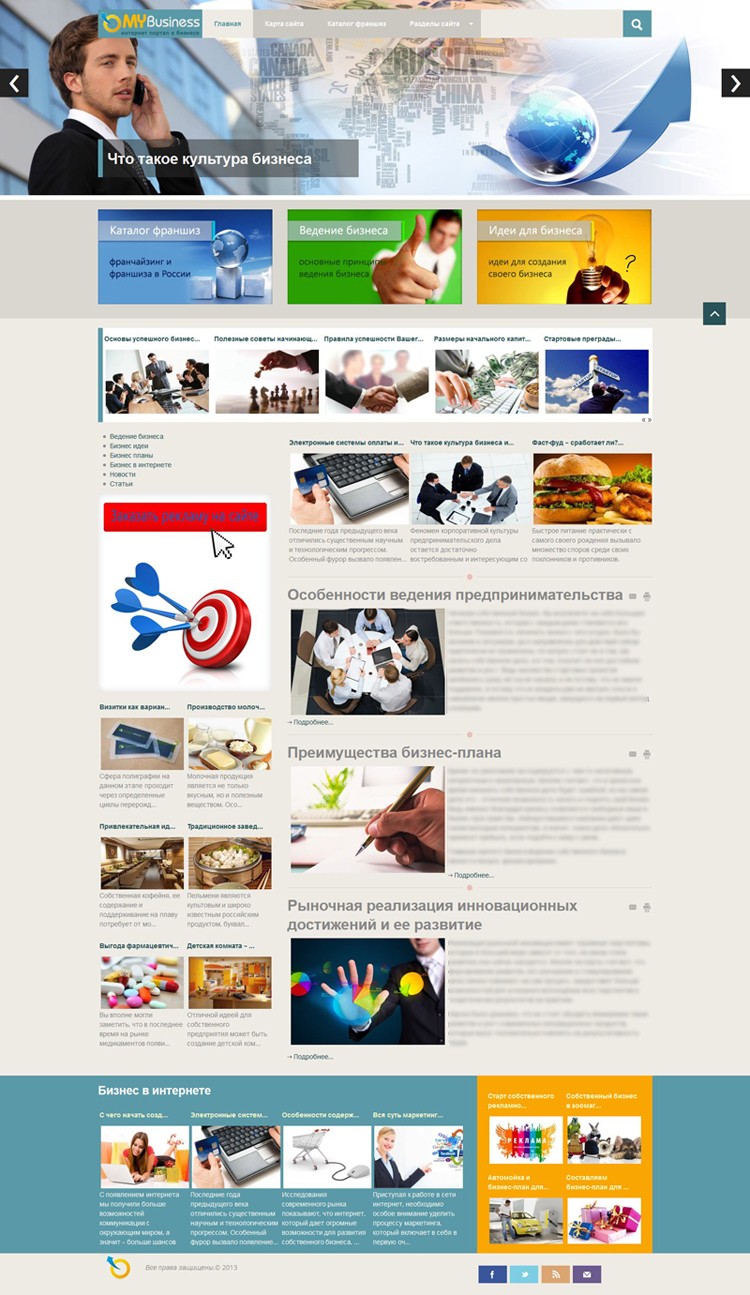 - Уникализированный шаблон, практически полностью изменен дизайн, доработан и оптимизирован под данную тематику сайта ("Бизнес");