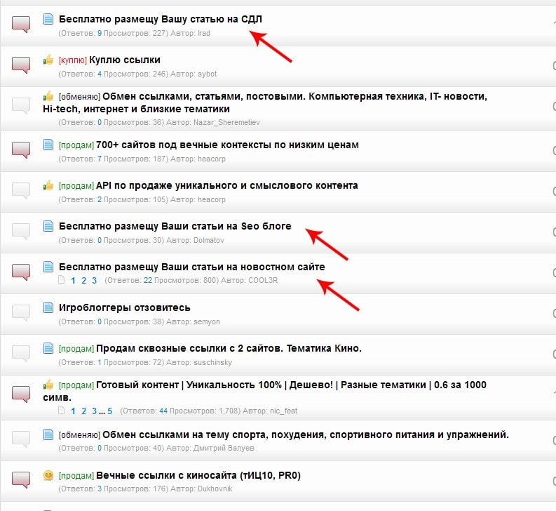Тут искать долго не нужно. Можно также поискать через Яндекс, по запросу «размещаю статьи». Можно желающих также найти на ВебМастерс в разделе «Ссылки, статьи, баннеры» желающих хоть отбавляй. Также можно найти на Серче в разделе «Размещение статей» желающих также море. Скриншот желающих ниже: