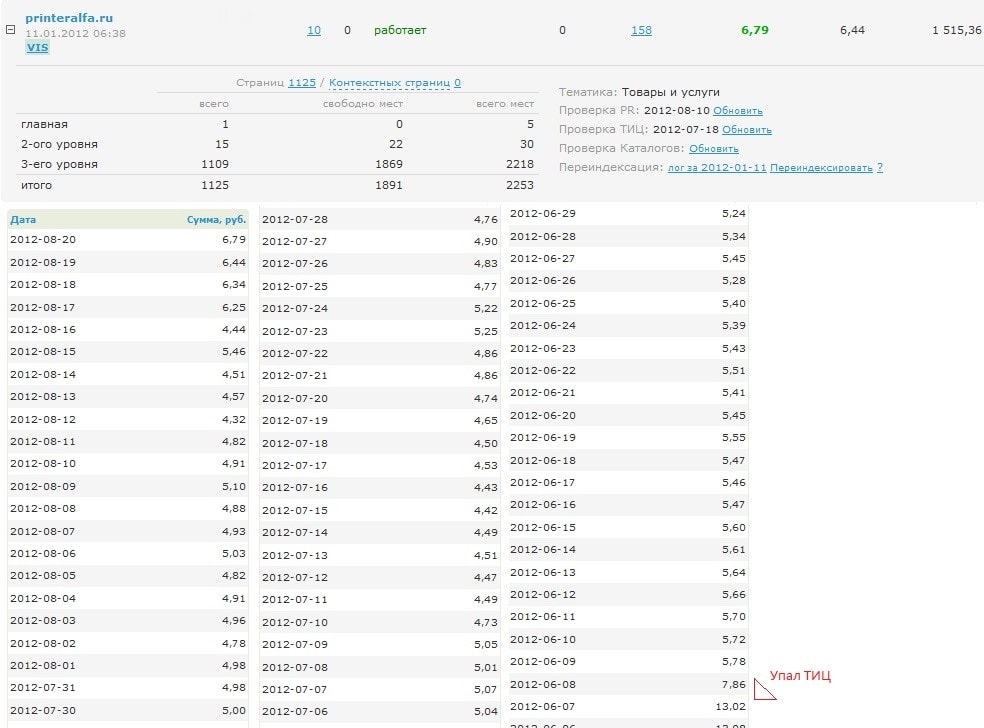 До падения ТИЦ доход достиг 13р., ТИЦ восстановился и доход сейчас растет.