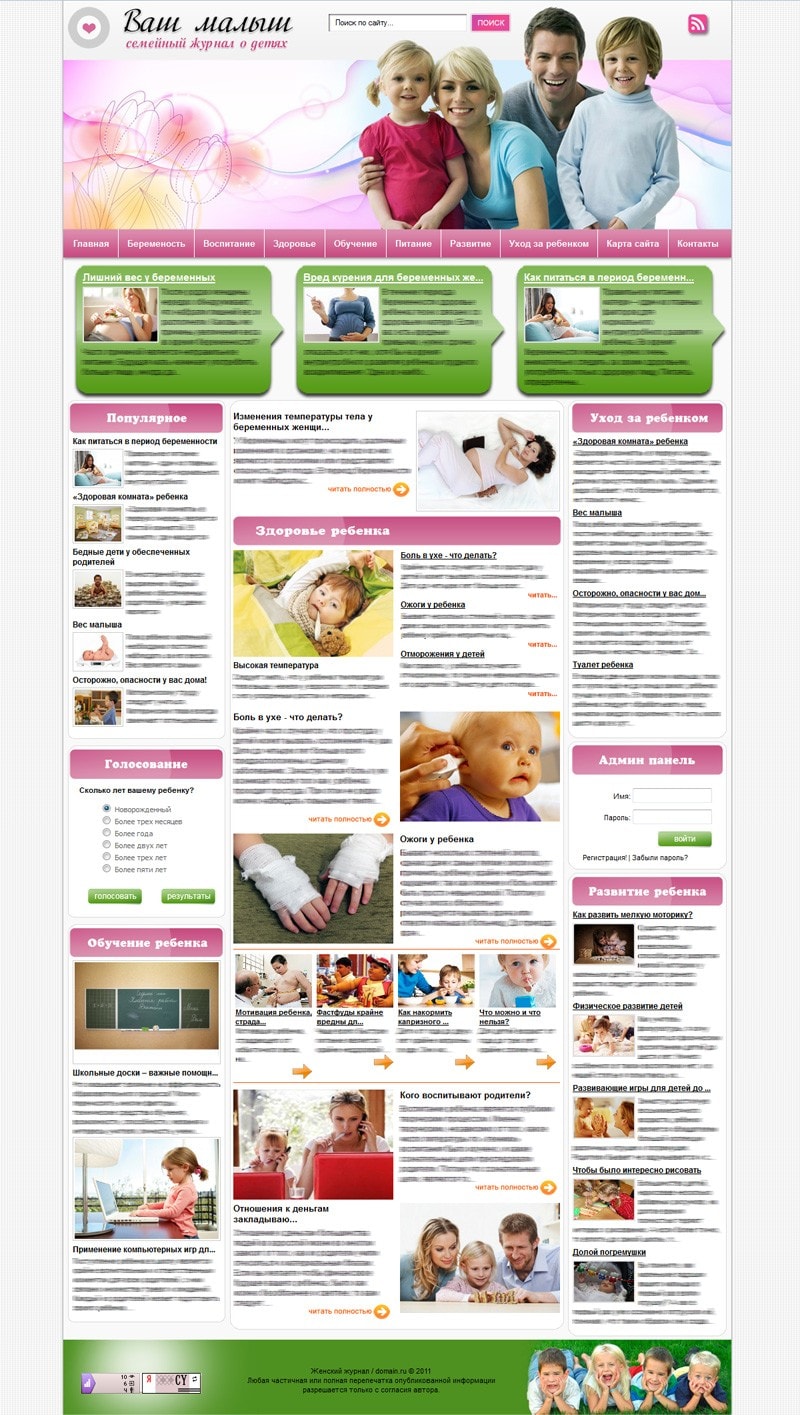 - Блок "Здоровье ребенка" выводит автоматически анонсы последних статей из раздела здоровье детей.