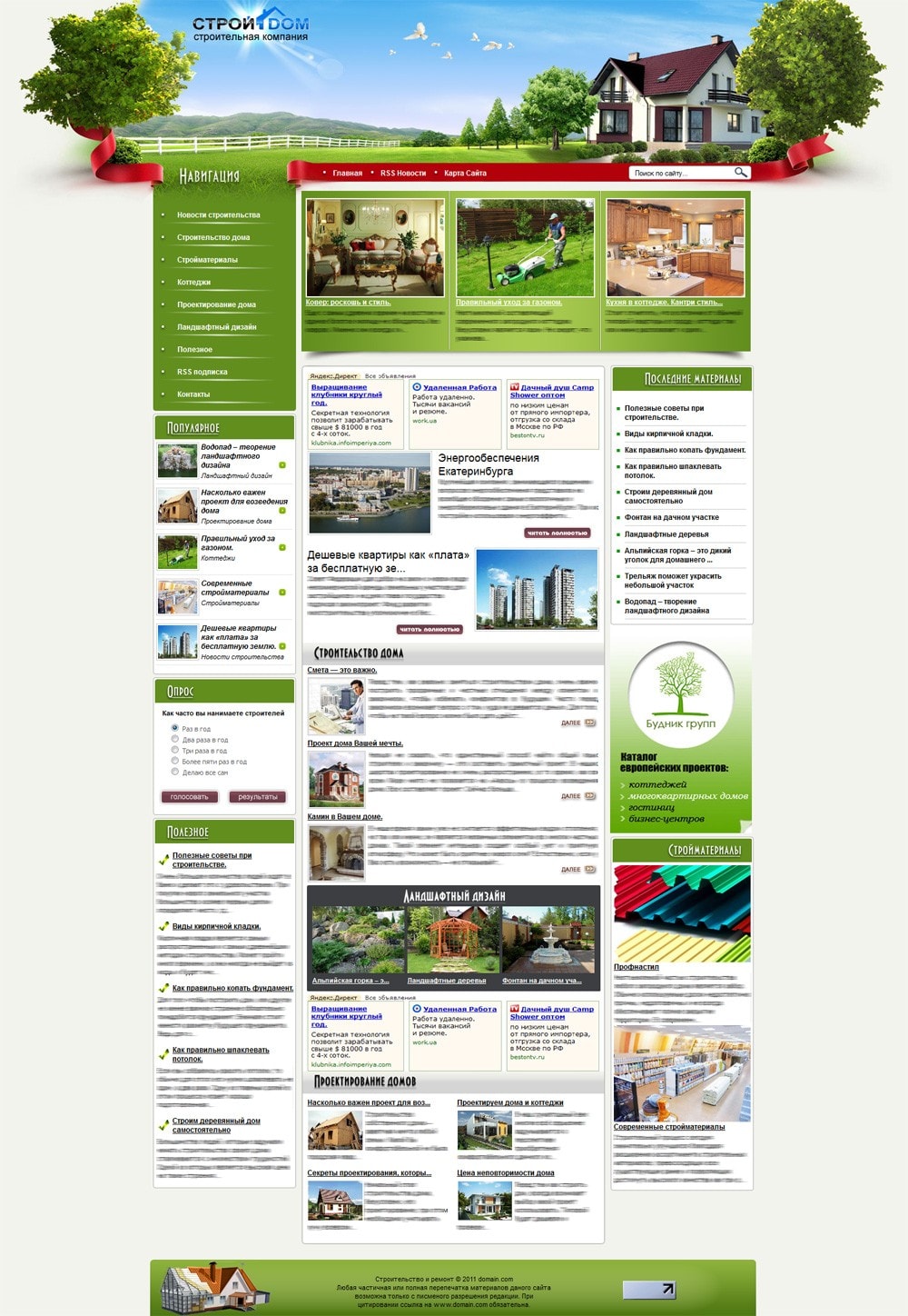 - Блок "Строительство дома" выводит автоматически анонсы последних статей из раздела строительство дома.