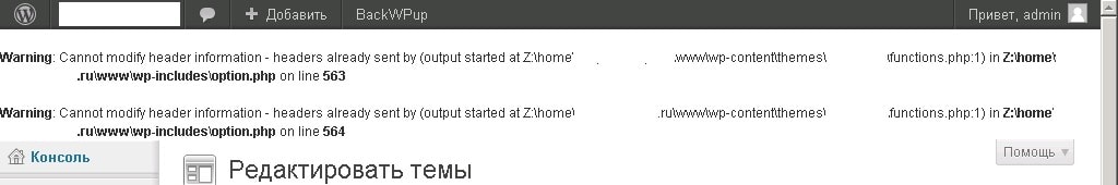 Warning: Cannot modify header information - headers already sent by (output started at Z:\home\сайт.ru\www\wp-content\themes\название темы\functions.php:1) in Z:\home\сайт.ru\www\wp-includes\option.php on line 564