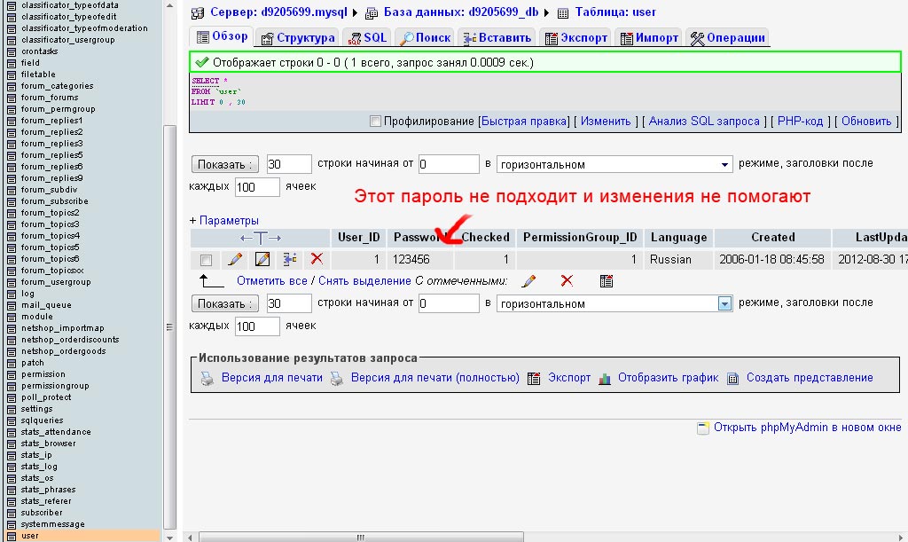 В БД я полный ноль, попробовал поменять пароль не получилось, по сему прилагаю скрин, что бы наглядней сказали куда щелкать, заранее спасибо!