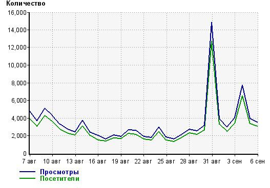 Поскольку сайт новостной, посещаемость зависит от новостного фона и от количества добавляемых на сайт новостей.