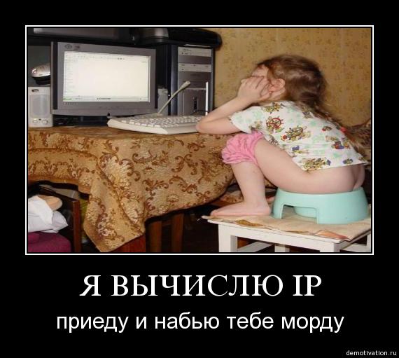 deetolog, ты опять за свое 😂 Судя по всему именно у тебя каникулы и тебе заняться нечем. Угомонись :) Никаго ты не вычислишь по IP и ни один провайдер не выдаст владельца IP первому встречному и не испугается школоло :) Ты не представляешь сколько раз мне такие как ты обещали надавать по кумполу, вычислив по IP и как видишь живой 😂 Так что складывай свои понты в мешочек и сходи на ёлку что-ли, займи себя чем-нибудь...😂