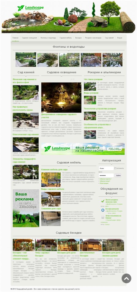 Контент: - Уникальный. 80 тыс. символов без пробелов. Глубокий рерайт - уникальность по advego и etxt - 98-100%. 44 интересных статей, 6 разделов (Рокарии и альпинарии, система освещения сада, садовая мебель, фонтаны и водопады, сад камней, садовые беседки). В каждой новости большая тематическая картинка.