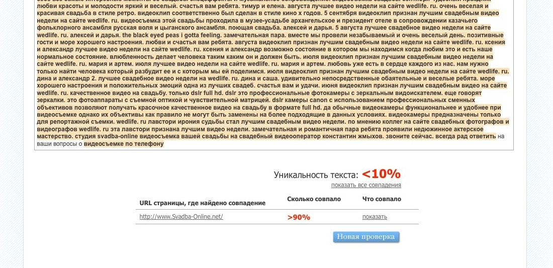 сервис проверки на уникальность выдает такую безрадостную картину.