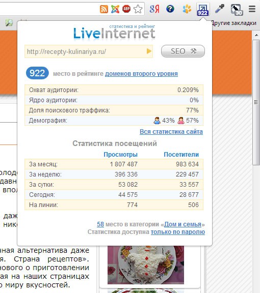 статистика для указанного сайта вот http://www.liveinternet.ru/rating/ru/?search=http%3A%2F%2Frecepty-kulinariya.ru%2F&ok=+%D0%B8%D1%81%D0%BA%D0%B0%D1%82%D1%8C+