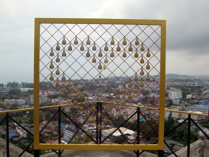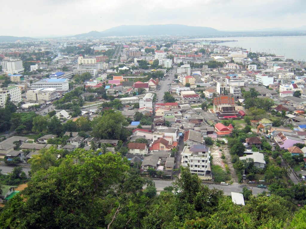 Общий вид на Сонгхлу - рыбацкий и портовый город, вытянутый на узкой полосе между морем и соленым озером. В нем масса храмов и прочих религиозных мест, чуть ли не на каждой улице: