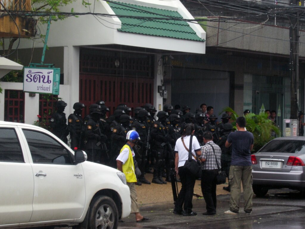 Тайский спецназ во всеоружии. Вряд ли это была реальная спецоперация - уж слишком усиленно их фотали не только очевидцы, но и явно профессиональные люди: