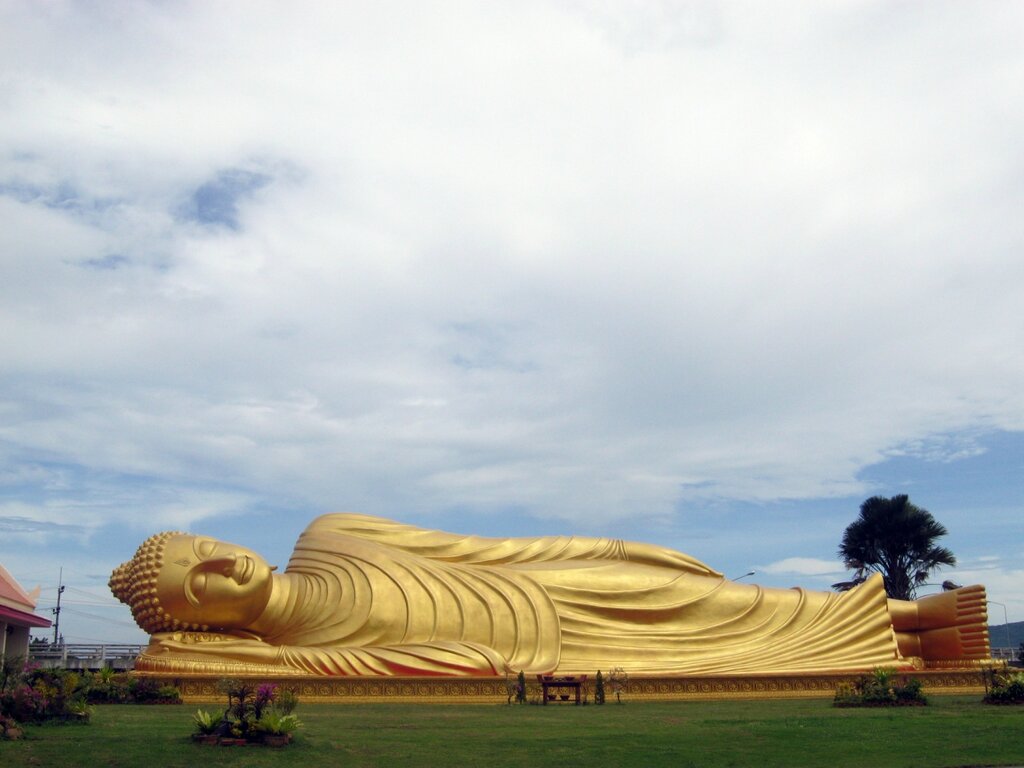 Спящий под открытым небом Будда неподалеку от Сонгхлы. Для масштаба обратите внимание на стол примерно посередине статуи - он рассчитан на нормальных людей =)