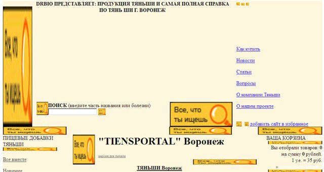 Dr-bio.ru и TiensPortal.ru - два зеркала для основного DrBio.ru, на котором сейчас расположен интернет-магазин биологически-активных добавок компании "Tiens" (отсюда и название).