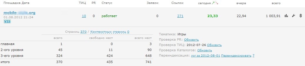 Параметры: тИЦ 10 ( стабильно больше года ) (покупал немного ссылок в казапе, + пару прогонов заказывал тут на серче)
