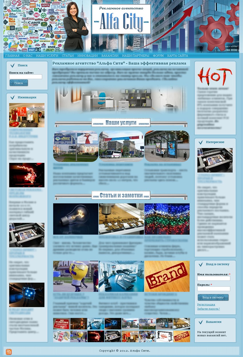 Выставляю на торги сайтик, сделанный в виде визитки рекламного агентства. Название рекламного агентства могу легко поменять на ваше. Также на сайте имеется контент, посвященный разным аспектам и технологиям наружной рекламы. Движок - Drupal 6.0.