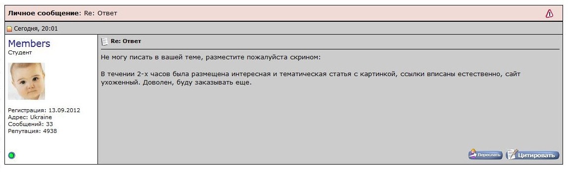 Написали и разместили статью очень оперативно. площадка хорошая не заспамленая.