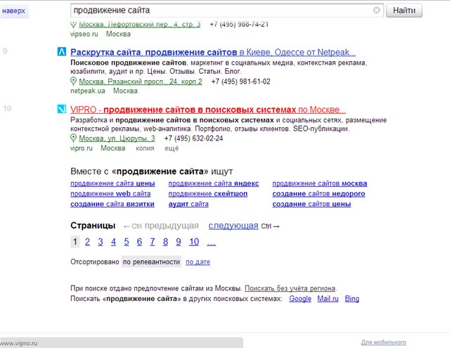 Наблюдаю сейчас - "продвижение сайта" на 10 и 11 месте по МСК один сайт, и самое интересное что оба ведут на главную. Уже не в какие ворота не лезет ))