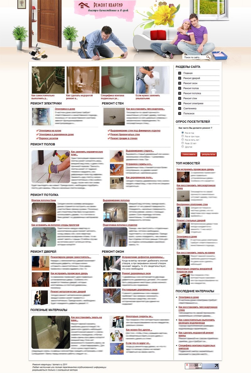 - Блоки в центральной колонке выводят автоматически анонсы статей из разных разделов сайта.
