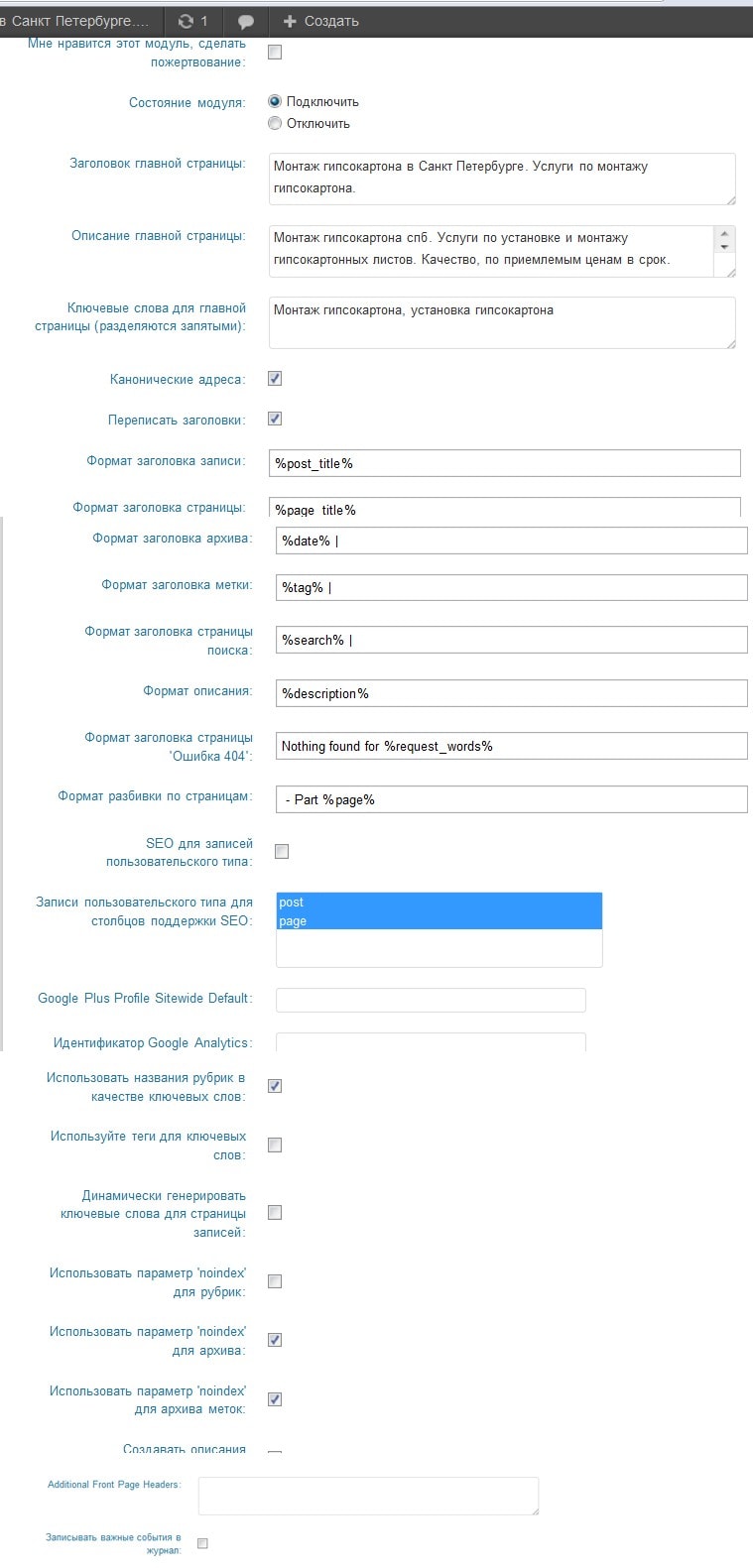 что не так с плагином сео все в одном, может не так настроил, гугл мне выдает не те titltе в категории, а яндекс все нормально выдает (правильный titlle)