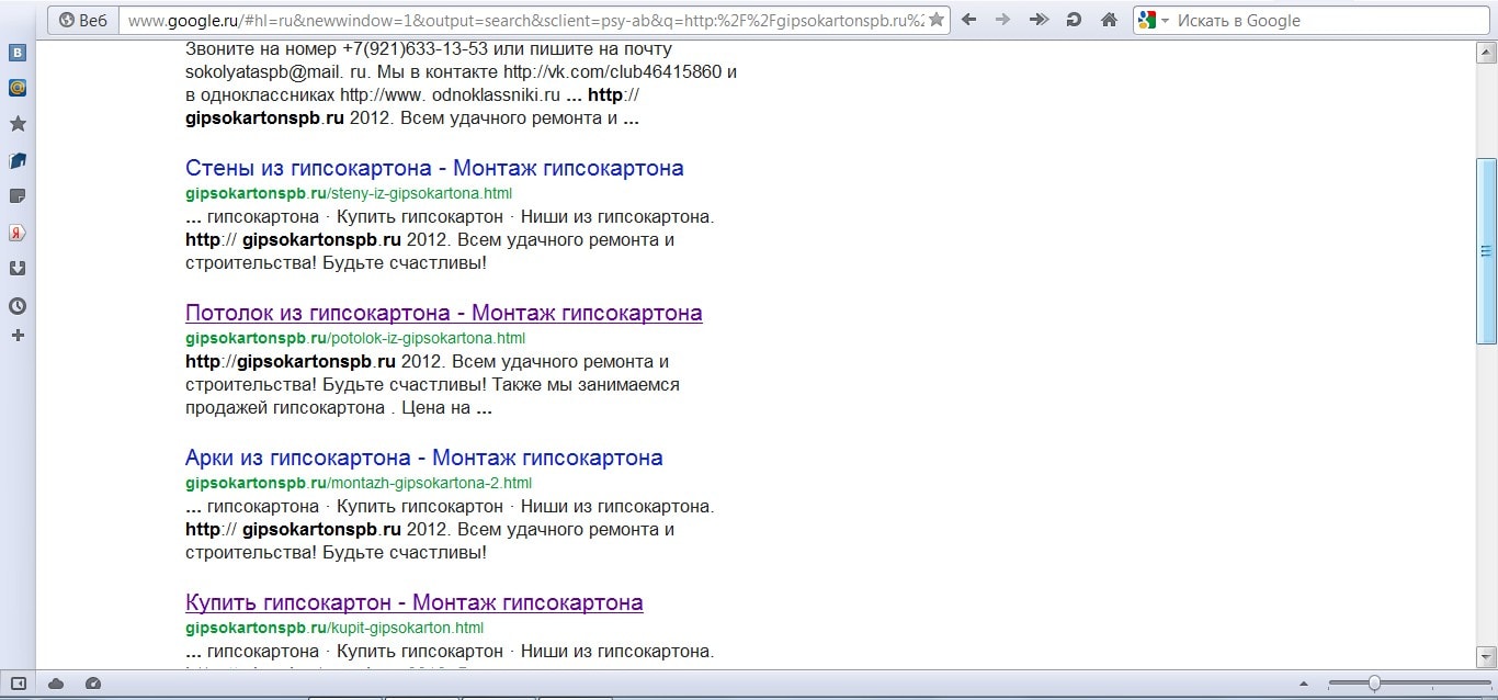 Ну так открываем исходный код страницы, например той же: http://gipsokartonspb.ru/potolok-iz-gipsokartona.html