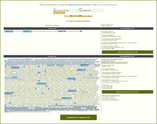 1. Сильно смахивает на "Анализ релевантности страницы" от МегаИндекс, хотя разница на выходе порядочная...