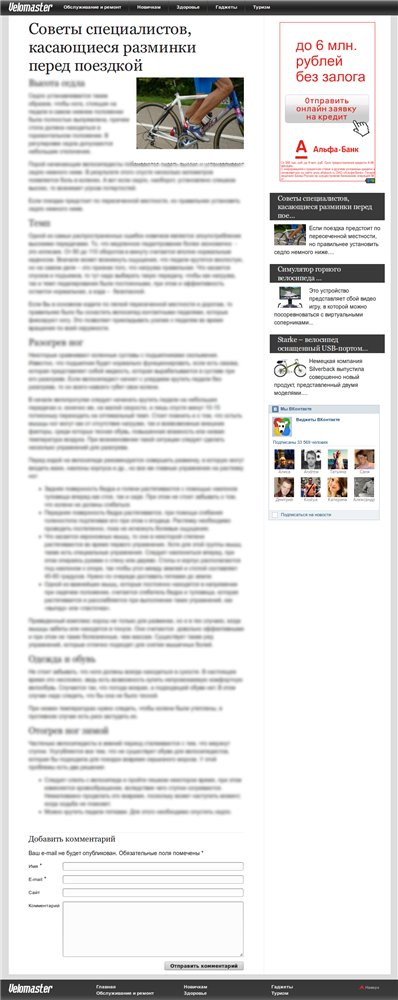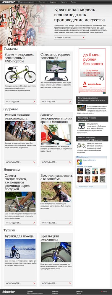 Сайт на тематику Велосипеды (Гаджеты, обслуживание и ремонт, советы)
