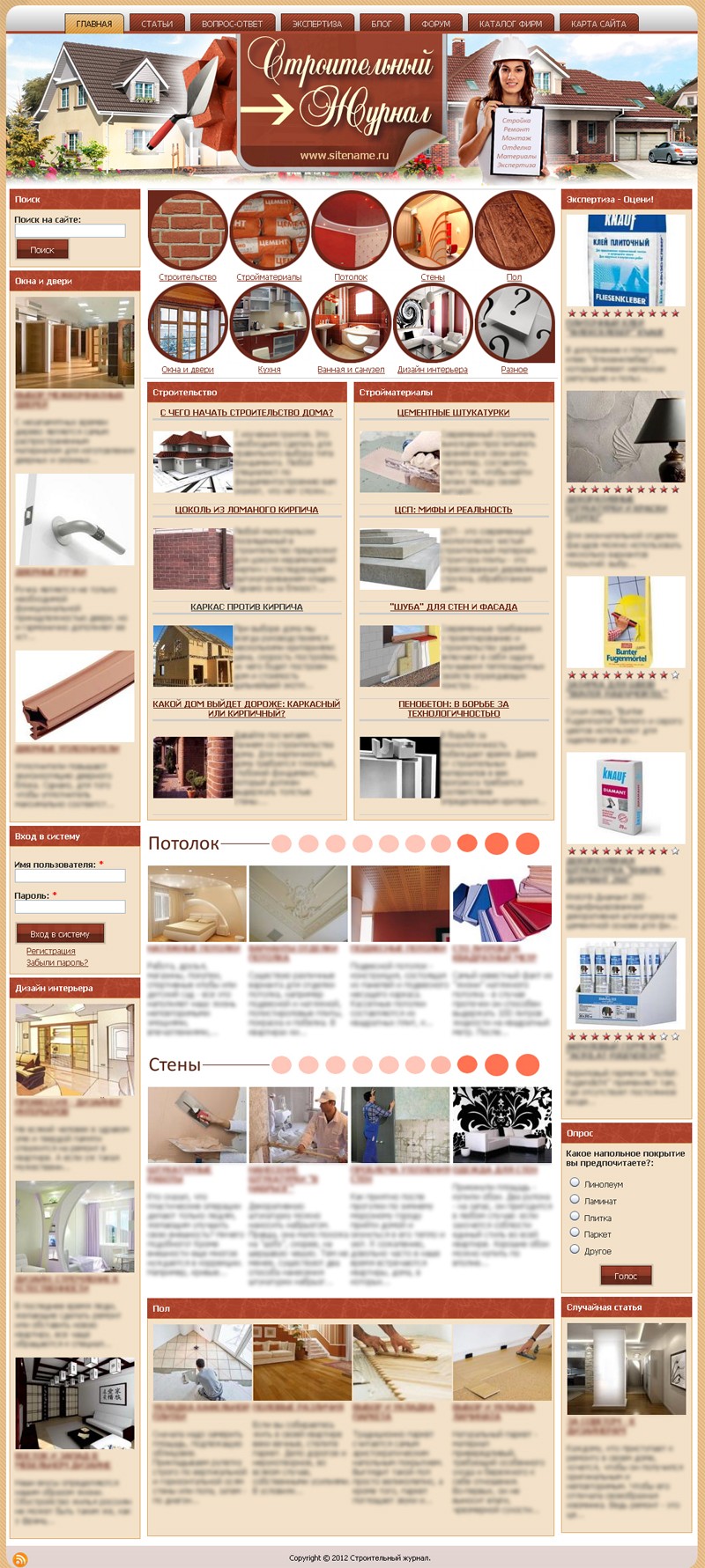 Выставляю на торги симпатичный сайтик посвященный строительству и ремонту. Движок - Drupal 6.0.