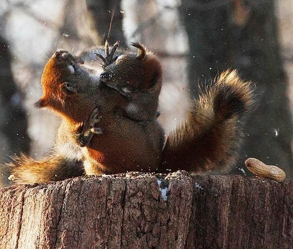 Орешек всего один, а белок целых две. Кто-то из них явно лишний. И началась драка...