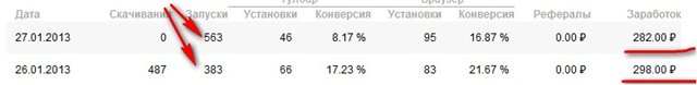Сегодня вообще чудеса, мало того, что вчера доход был в 2 раза ниже обычно, так сегодня еще раза в 1.5 ниже вчерашнего. Сегодня намного больше траффика - скачиваний - открытий, а толку НЕТ! Деньги не идут...